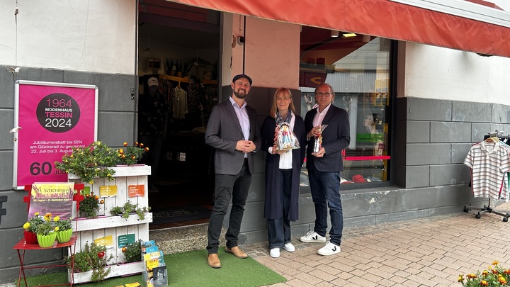 In diesem Jahr feiert das Modenhaus Tessin seinen 60. Geburtstag. Diesen feierlichen Anlass nutzt Bürgermeister Malte Schneider, um den Inhabern Gabriele Tessin-Tinguely und Alain Tinguely persönlich seine Glückwünsche auszusprechen. „Jeder Schöninger und jede Schöningerin kennt das Modenhaus Tessin. Ein Geschäft über so viele Jahre erfolgreich zu führen und als Schöninger Marke zu etablieren, ist eine Leistung, die es zu würdigen gilt“, gratuliert Bürgermeister Schneider.