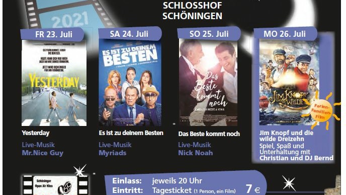 Trotz der Coronapandemie findet die traditionell zum Ferienstart angesetzte Open-Air-Kino-Veranstaltung der Schönywood AG vom 23. bis 26. Juli, im Innenhof des Schöninger Schlosses statt – natürlich unter den einzuhaltenden Maßnahmen, aber nicht minder gut gelaunt. Denn die Veranstalter haben ein attraktives Konzept auf die Beine gestellt!