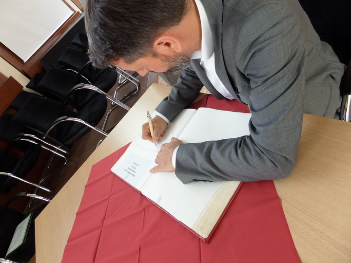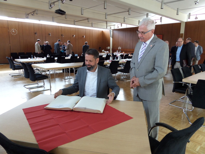 Nach der Eintragung ins goldene Buch der Stadt ging es dann gemeinsam mit Bürgermeister Henry Bäsecke ins Landesforschungsmuseum Schöningen, wo sich Olaf Lies die Ausstellung und die neusten Grabungsfunde ansah und erklären ließ. In diesem Zusammenhang wurde er ebenfalls über das Projekt „Wildnis wagen“ informiert, welches eine zwischenzeitliche Nutzung des Tagebaufeldes Schöningen-Süd beinhaltet. Umweltminister Lies zeigte sich davon absolut begeistert und versprach seine volle Unterstützung.